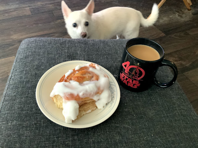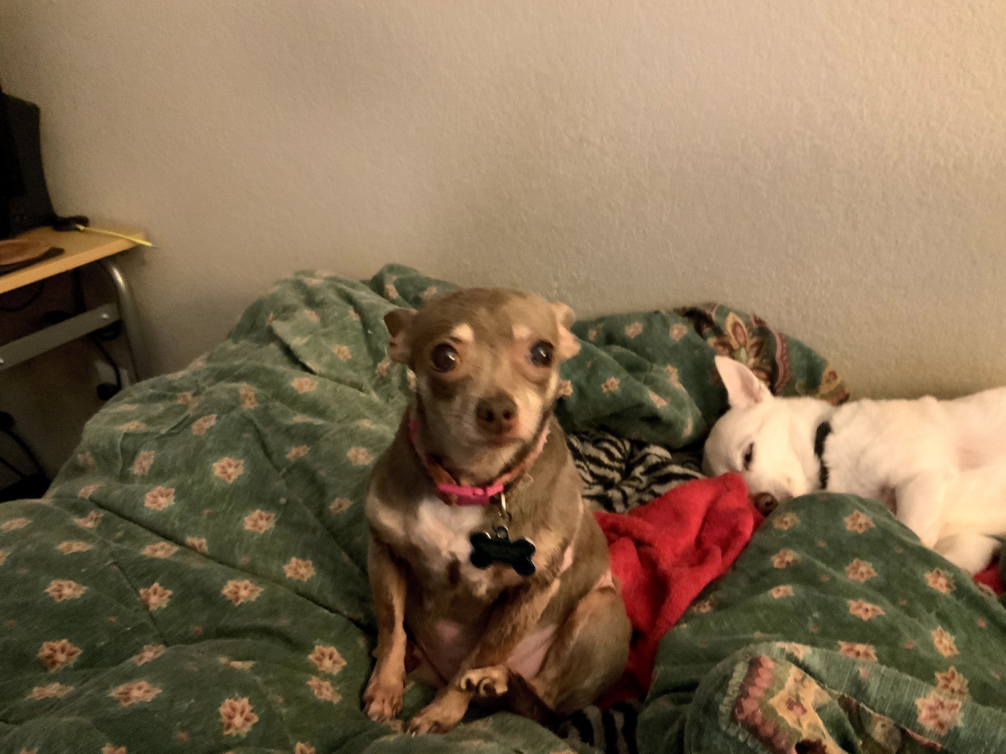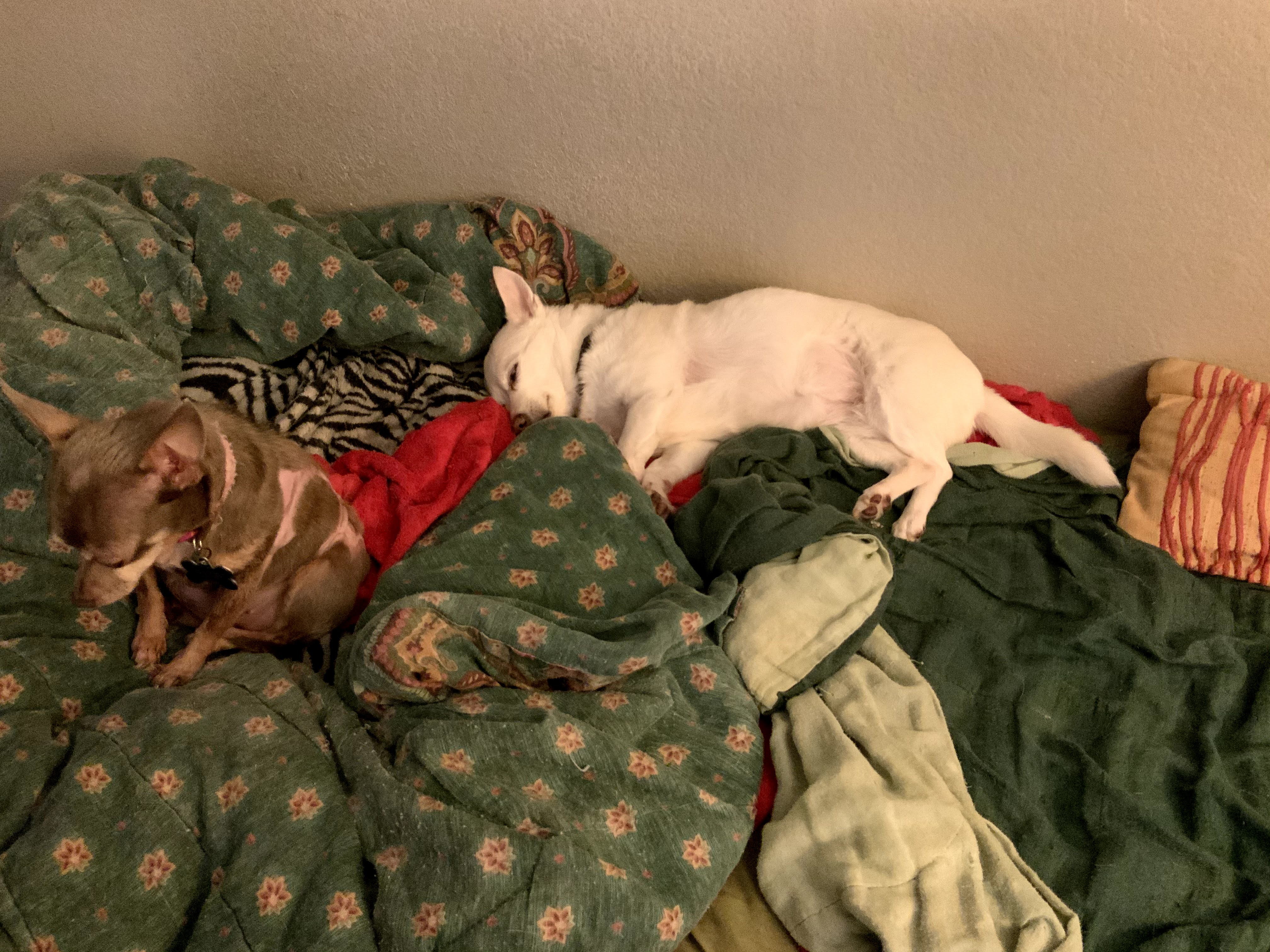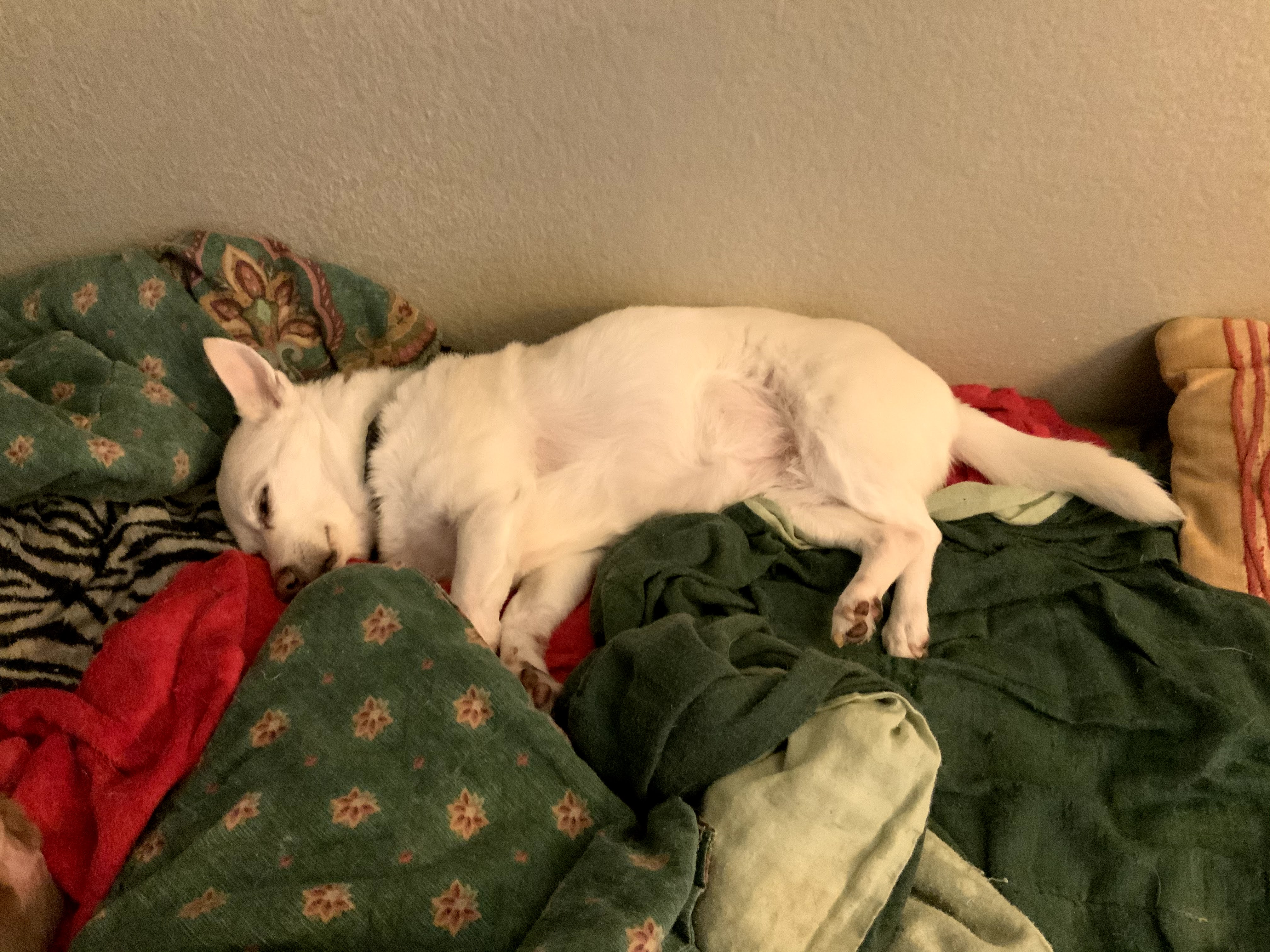 Basically spent the night with Willow where my leg goes, Corky by my opposite hip, and Misty in her spot to my left. Which she had to vacate as part of getting up. But comfortable Willow was moving for no body, lol.