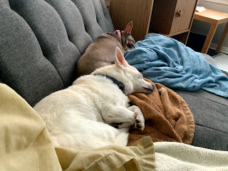 October 3, 2020 by Terry Poulin Relative intelligence: they are full of treats and napping; I haven’t even had lunch yet.