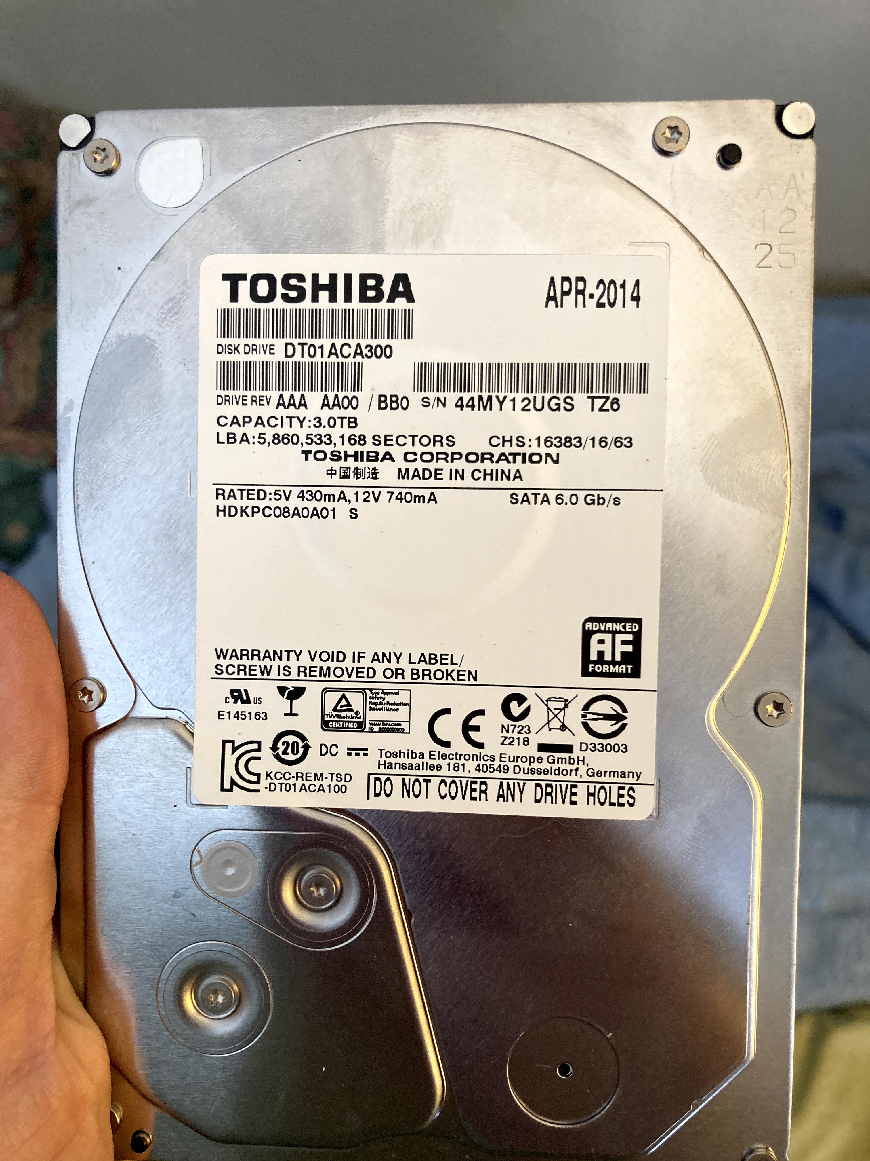 Possible re-homings include my Xbox for storing games, or adding it to my desktop to store video files being processed for my file server. Both tasks fall under transient data storage, and I’m disinclined to use a drive with over 2,000 power on hours for anything mission critical. Hmm, I think modern Xboxes have a limit of 128 GB – 16 TB for USB 3.0 drives.