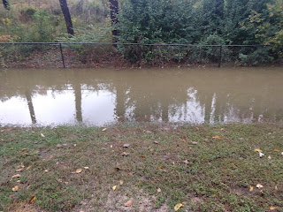 When it started to sound like someone up ended a lake, and dumped it overhead: I figured the slope out towards the fence would be pretty flooded this morning.