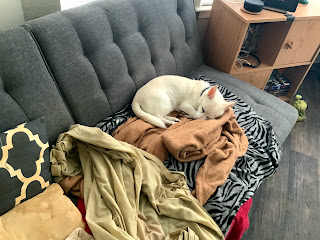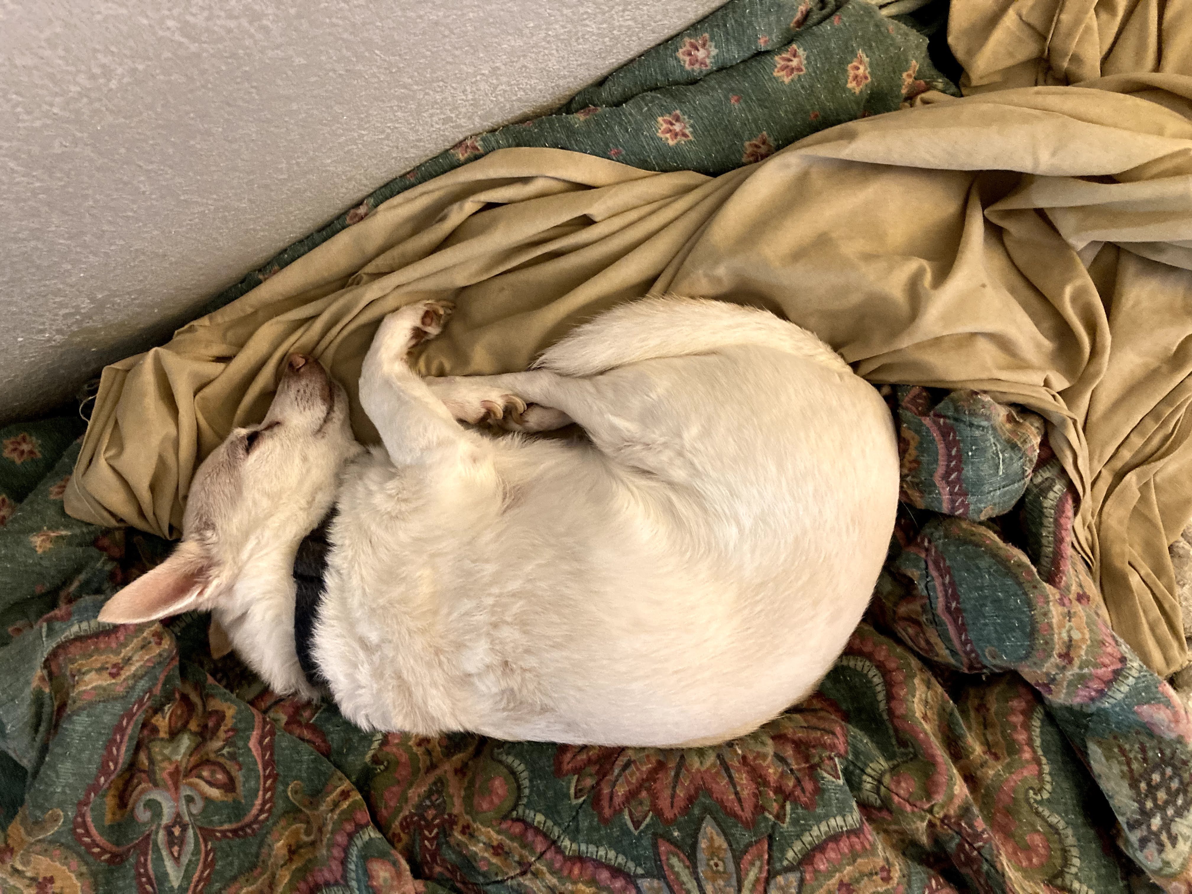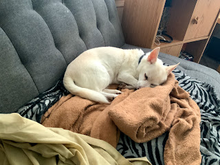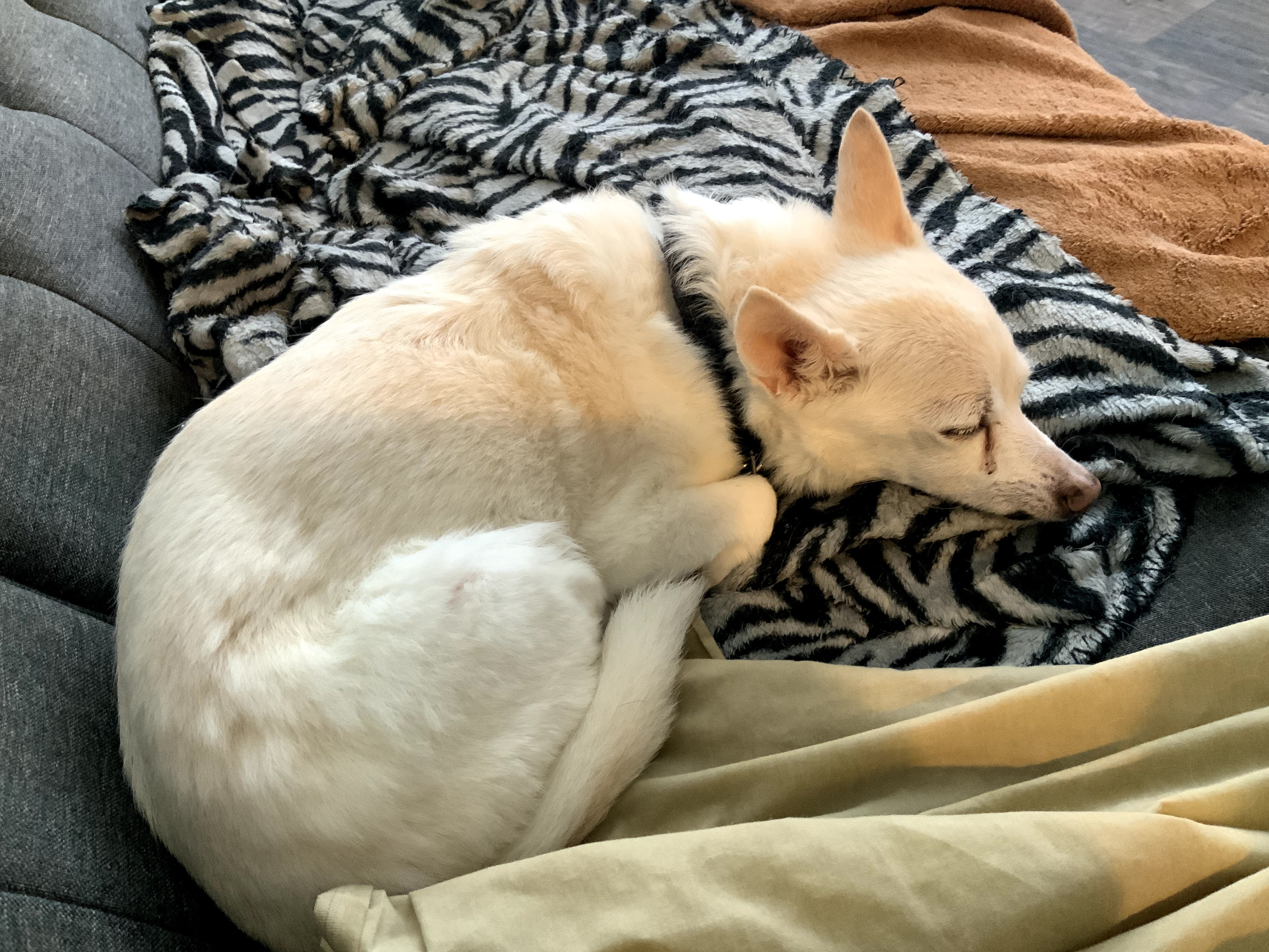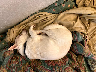 She had stopped eating and drinking enough that she spent a few days on an IV, and seemed to perk up. Her blood work neither improved nor worsened, so I decided to at least try making it through the weekend. But in a few days started refusing dog food and spent her last couple nights on a diet of boiled chicken and rice. Last night, I think we got about 45 minutes of sleep as she would keep barking and refusing any food or water. This morning she refused her pill wrap with the arthritis meds, something she had previously accepted despite the eating issue. Willow basically spent the morning shifting between barking a few times and going back to sleep. By the time I decided to accelerate the trip to the vet instead of waiting for our appointment, I think her kidney’s were already starting to give out.