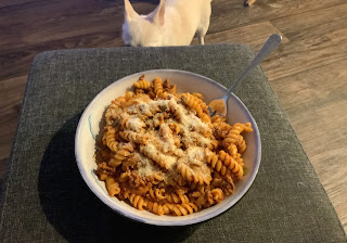 There’s two things that Willow has a high likelihood of attempting theft: fish and chicken. Other than that, she tends to be pretty good about not trying to steal off my plate.