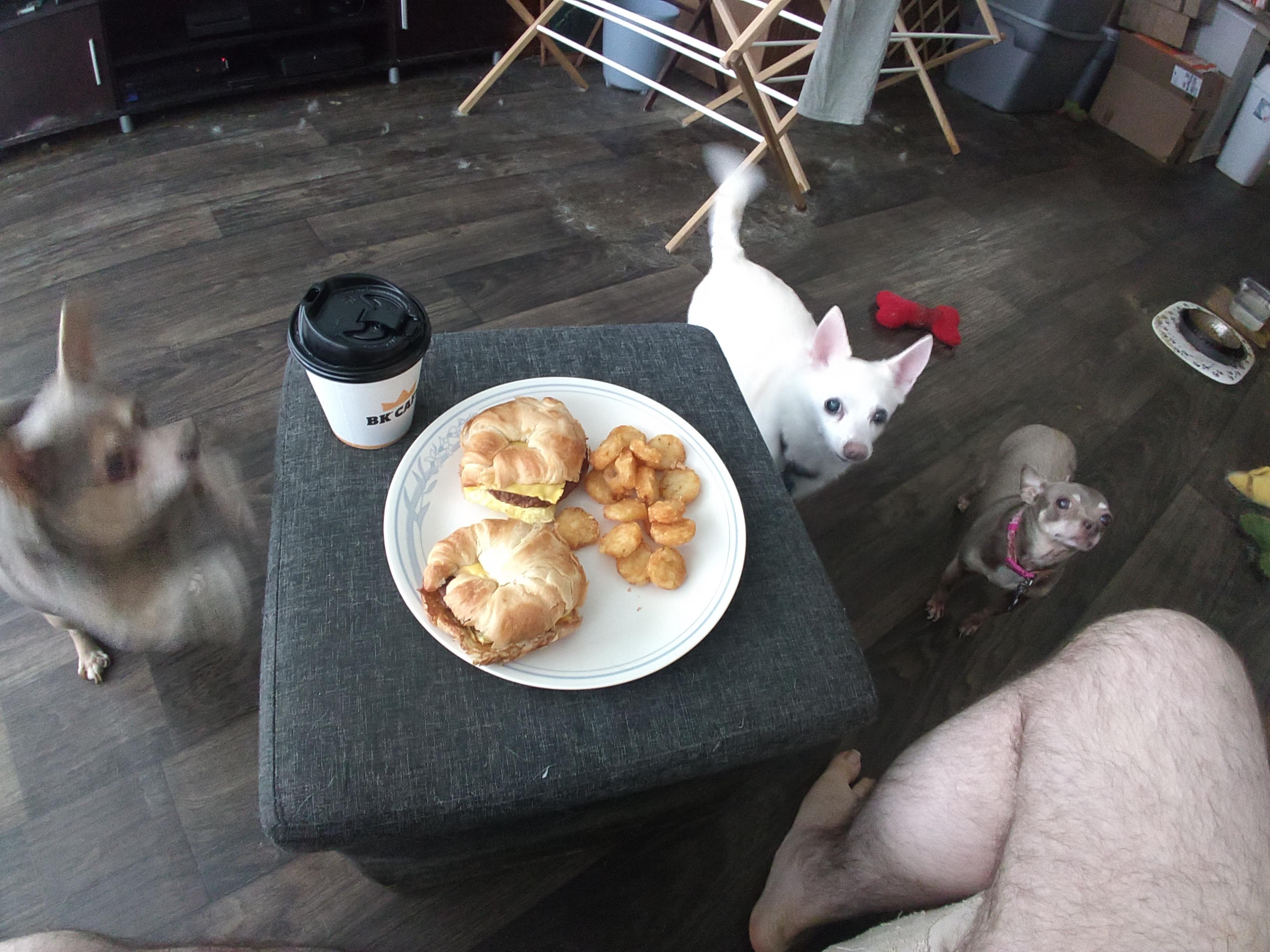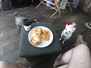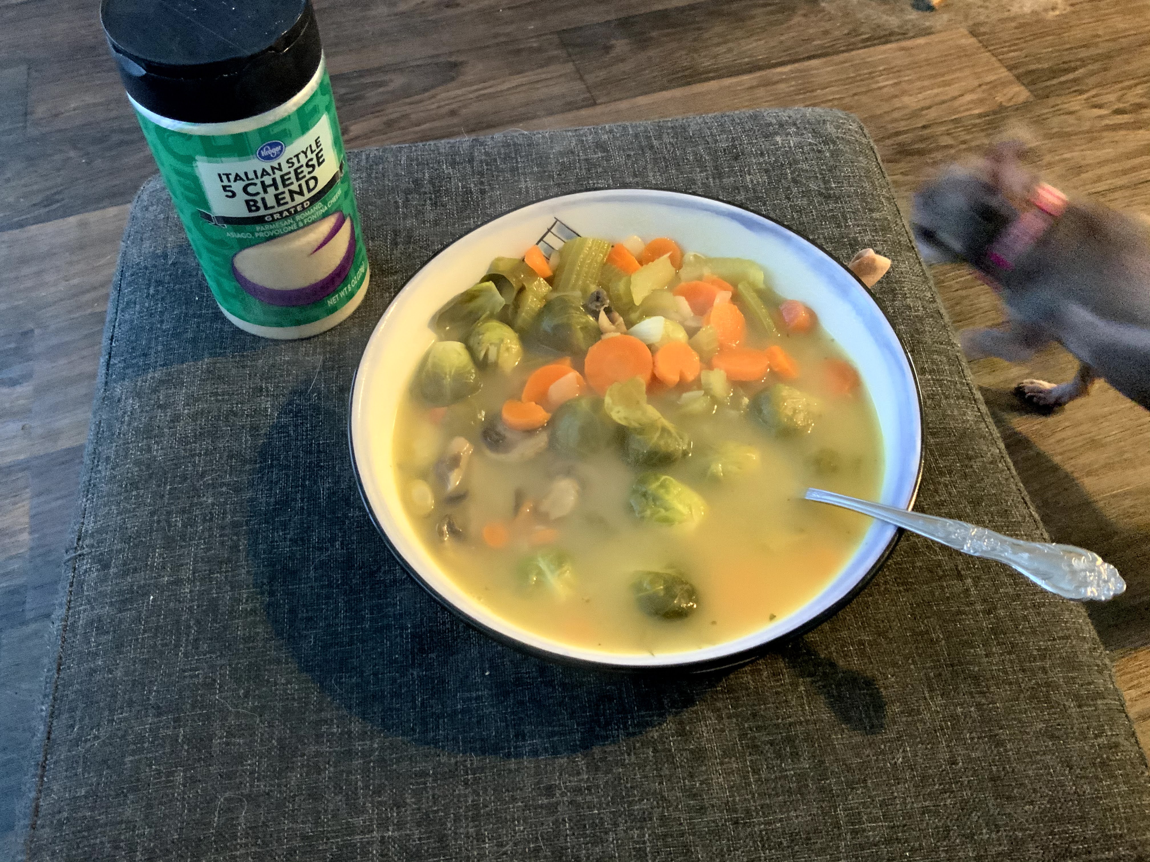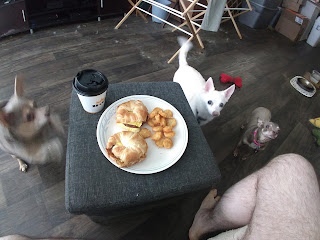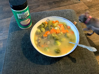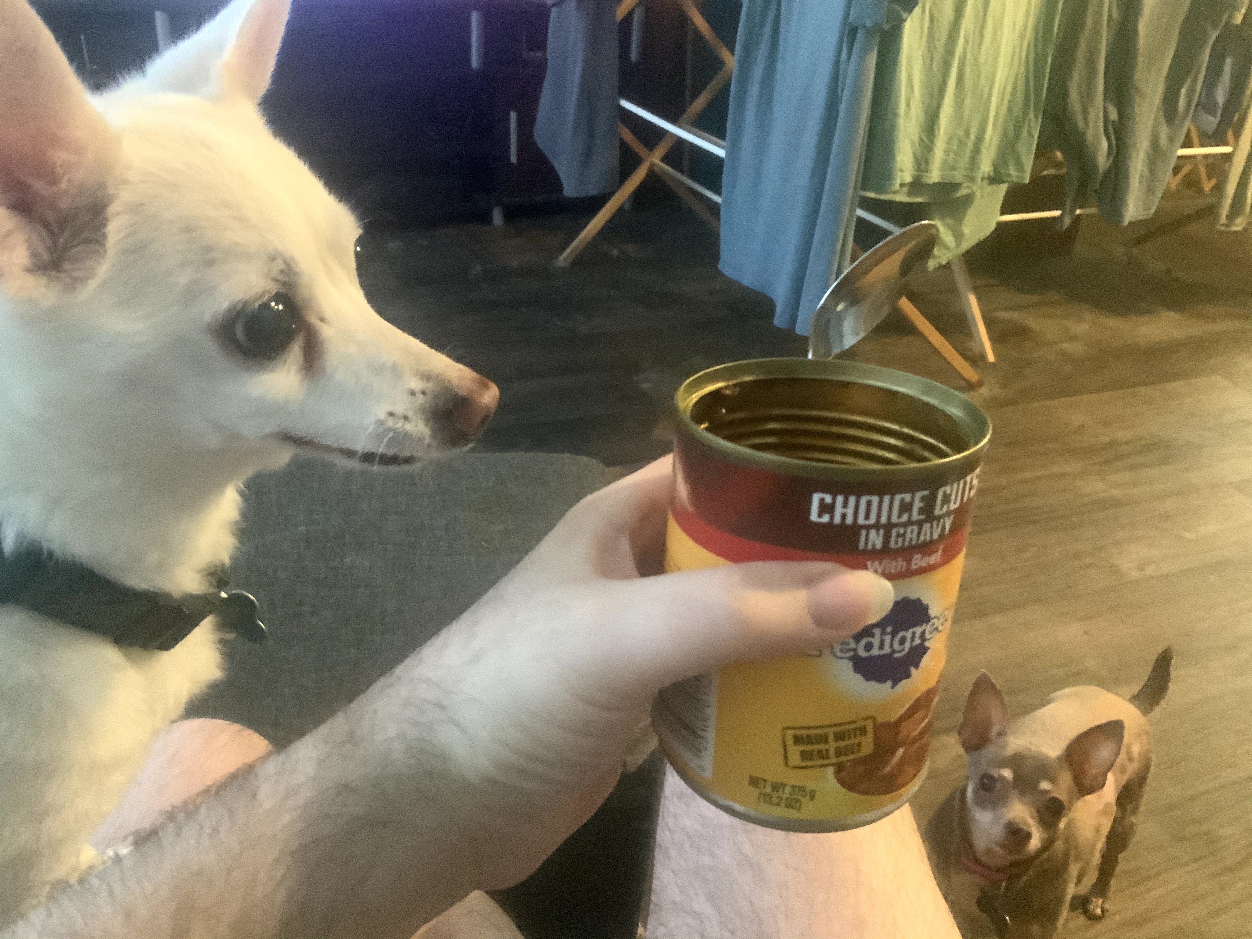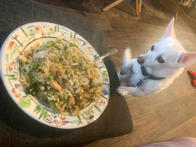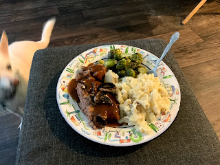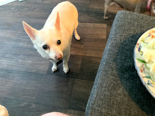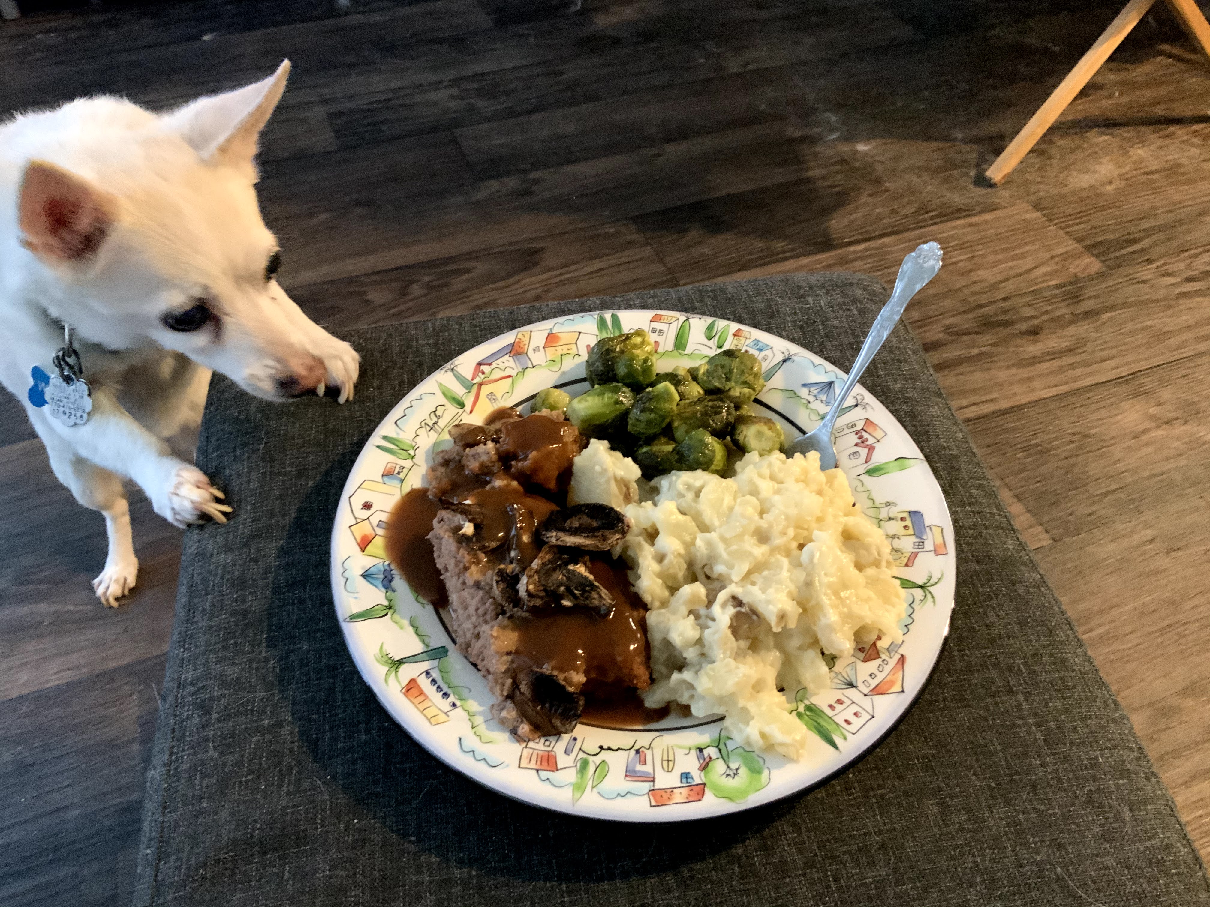 To compensate for the time spent in the kitchen, I gave the hungry minions a regular treat before I started cooking. Then some of their meat and gravy goodies after dinner; usually they have to wait until after dinner for their weekday treats.
