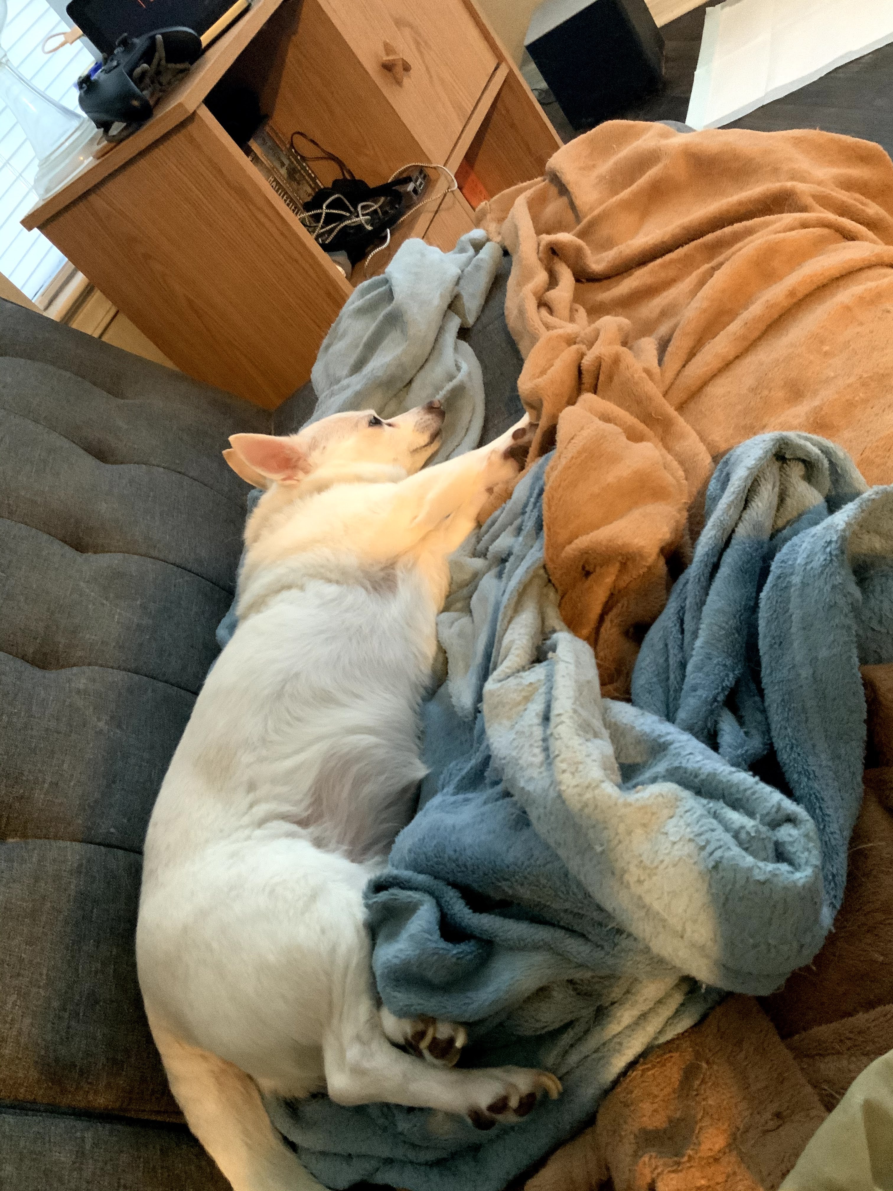 The pair of potatoes that didn’t make it into this weekend’s vegetable soup got baked, mashed, and turned into pure deliciousness. I forgot how much work it is to mash potatoes, and just how incredibly worth the effort it is! That I’ve switched from cooking with milk to using half & half hasn’t hurt any. Licking the potato masher was enough to prove my efforts were successful 😁.