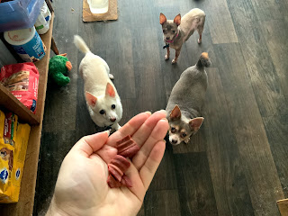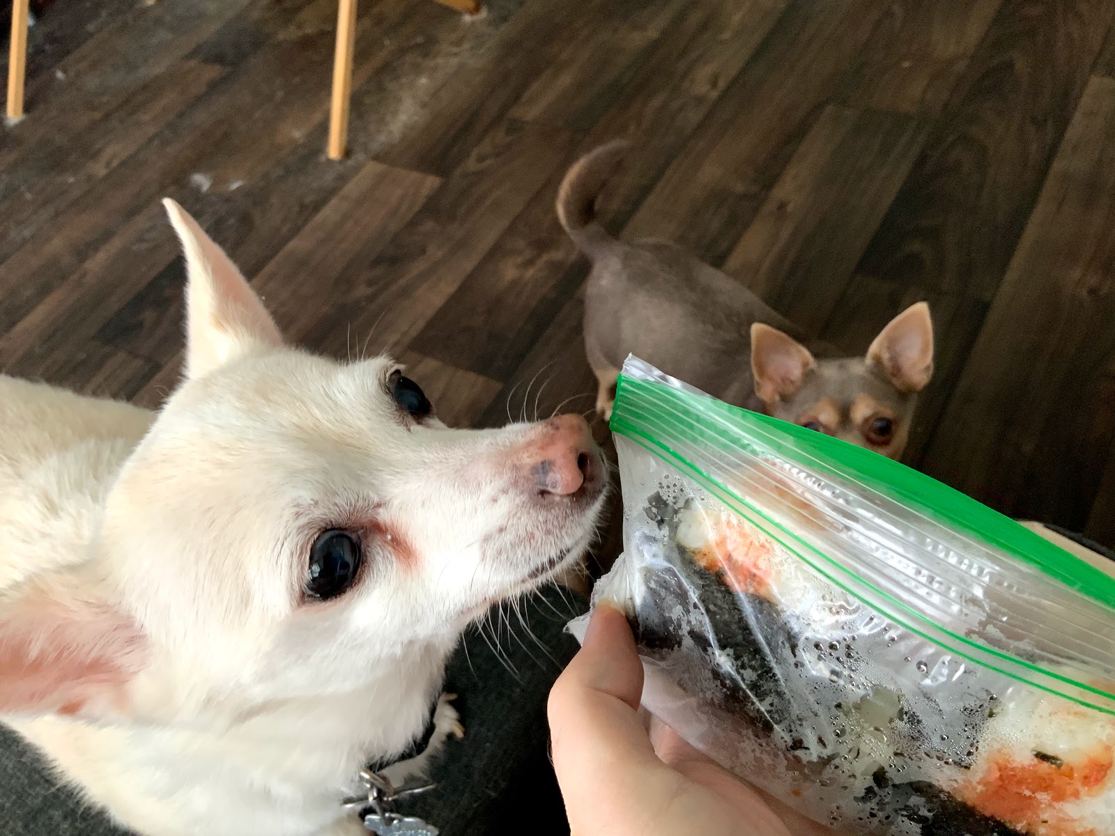 Of course after breakfast: the doggos require proper treats to follow up their share, lol.