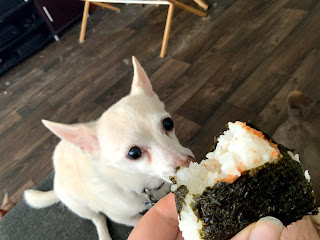 The onigiri I made last night of course drew some attention, since tuna was involved.